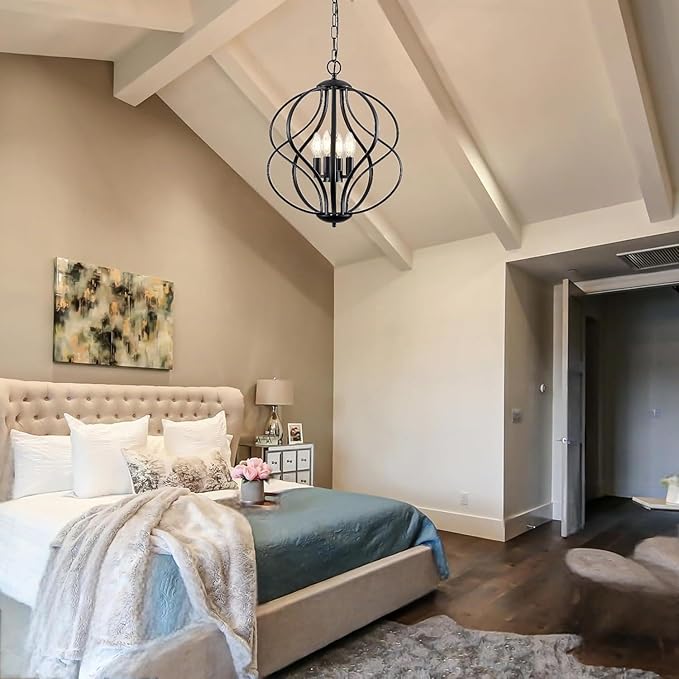 - Modern Framhouse Design Style: The black dining room chandelier is made of iron carefully selected by our team. The sphere pendant light fixtures is designed with an open tubular structure that is corrosion. Giving this black and gold candle chandelier a long life