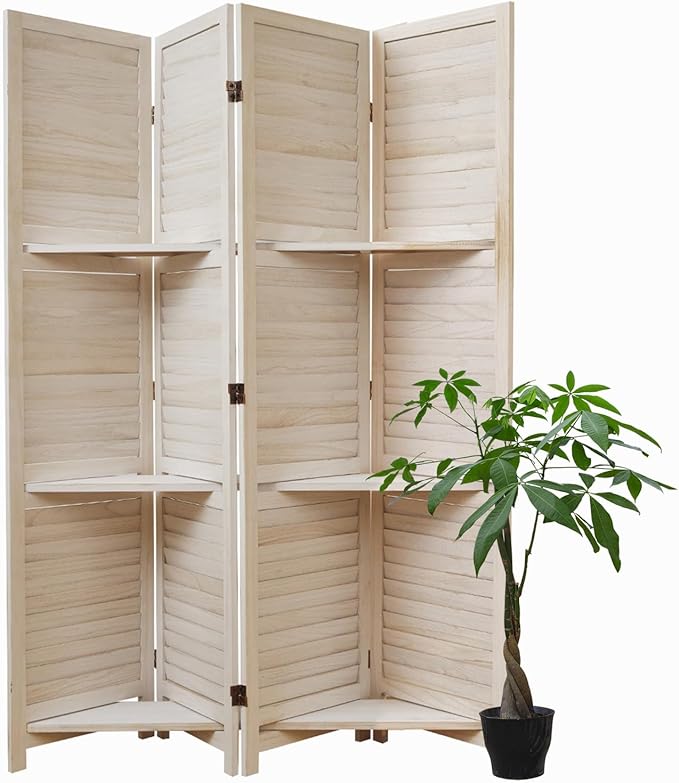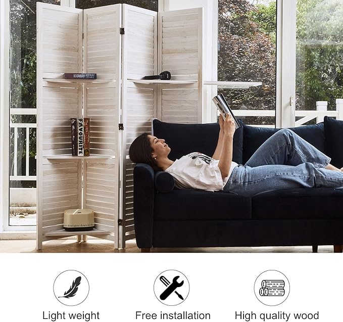 - CLASSICAL STYLE: The louvered is designed to be simple, Plus the carved design is even more stylish, on which the partition function is added, which can be used to place photo frames, potted plants, candles and some small decorations. paredes para dividir cuartos protects privacy while adding storage function, which ensures good ventilation and enhances interior decoration.