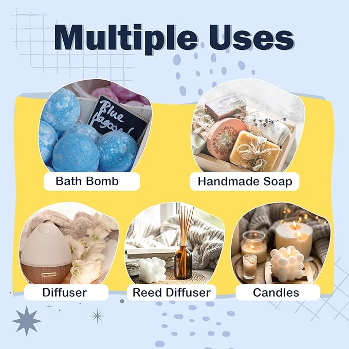 - Easy to Use Anytime & Anywhere: This scents fragrance oil aromatherapy essential oils kit adapts effortlessly to your lifestyle. Add a few drops to diffusers, humidifiers, or oil burners to freshen any room. Incorporate into homemade candles, soaps, or lotions for personalized creations. Use in massage oils or bath water for soothing self-care rituals. Compact and convenient, these diffuser oils are perfect for travel, office, or home, making them simple to enjoy wherever life takes you.