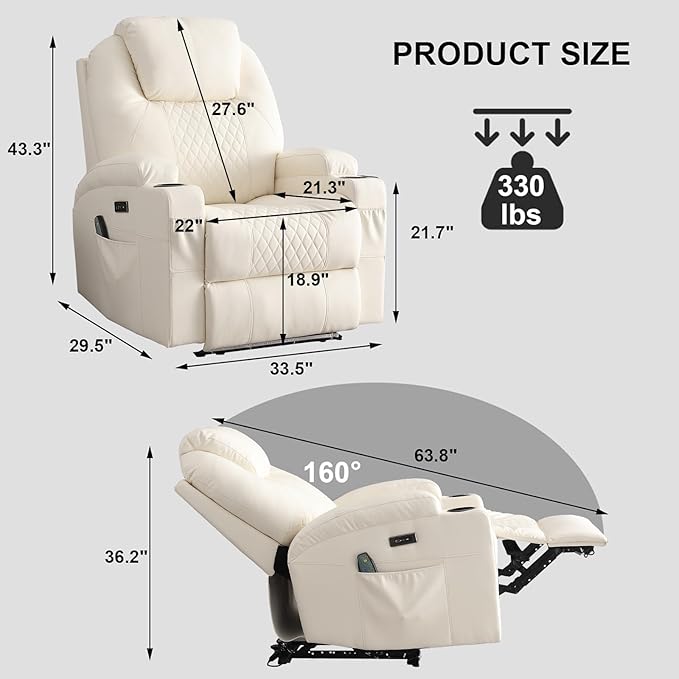 - Power Recline: This recliner can function as a versatile lounge chair for daily relaxation and as a luxurious home theater seat. With an electric button for smooth reclining between 100° to 150°, feature ensures effortless operation for users of all ages