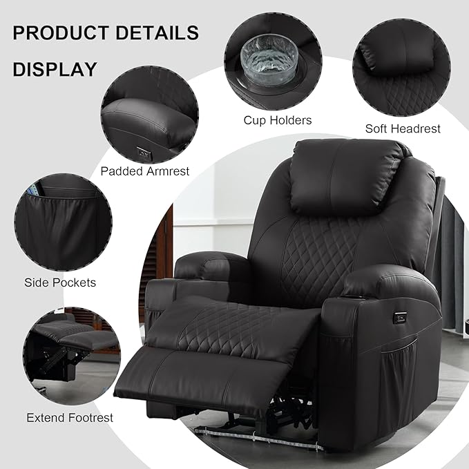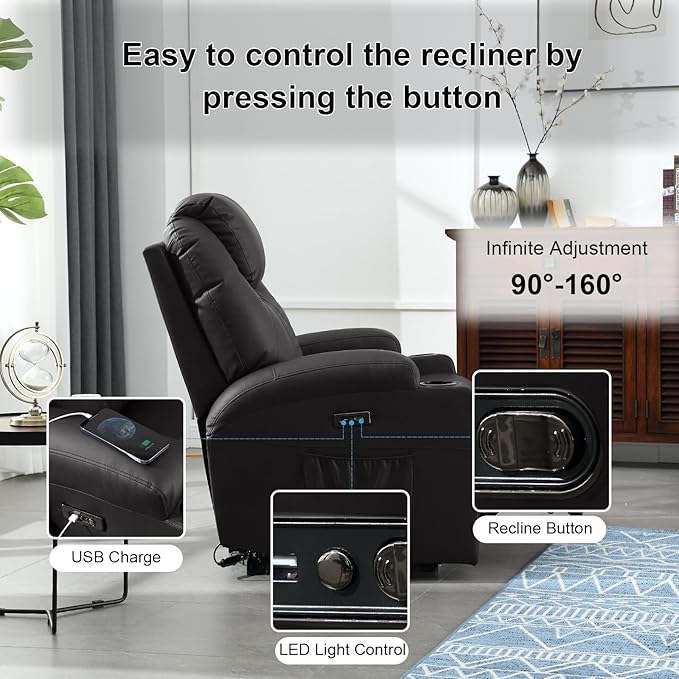 - Power Recline: This recliner can function as a versatile lounge chair for daily relaxation and as a luxurious home theater seat. With an electric button for smooth reclining between 100° to 150°, feature ensures effortless operation for users of all ages