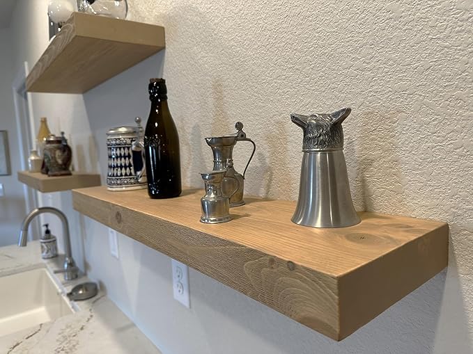 - Elevate Your Space with Rustic Charm: Transform your living room or any space with our large floating shelves for wall. These 42 inch floating shelf beauties, crafted from natural wood, add a touch of rustic warmth and provide ample display space for your cherished items.
