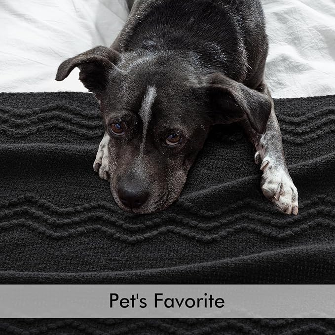MIULEE Black Knitted Throw Blanket for Couch Textured Knit Blanket with Tassels Cozy Woven Boho Bed Blanket for Sofa Bed Chair Acrylic Wave Pattern 50"x60"