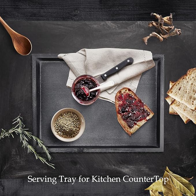 Rectangle Wood Serving Tray with Beads, Black Washed Wooden Decorative Tray for Entertaining, Decoration, and Gifting