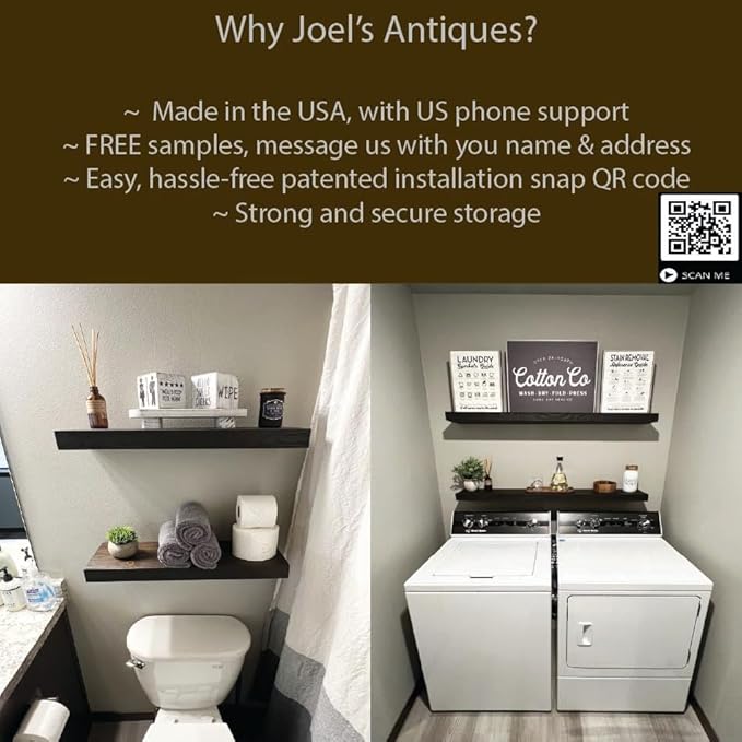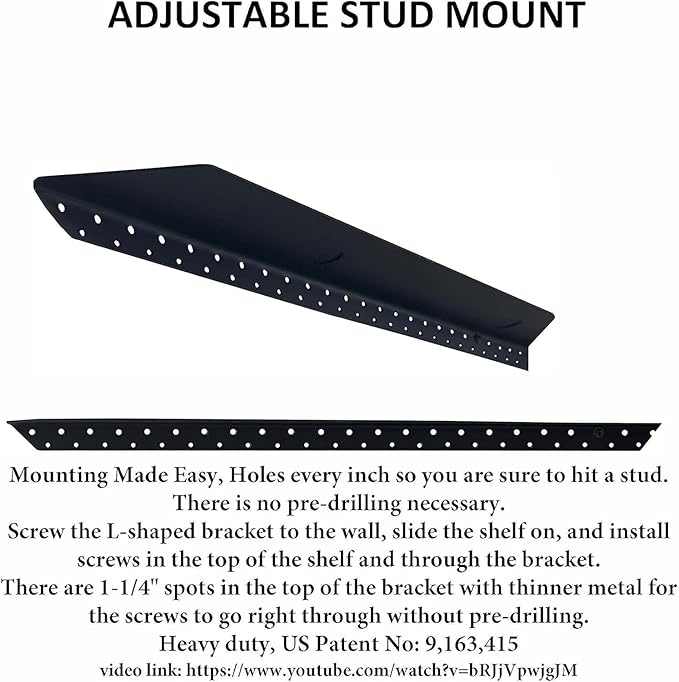 - Effortless Installation: Say goodbye to complicated setups. Our patented wood stud mounting system makes installing these rustic floating shelves a breeze. With pre-drilled holes and included hardware, you'll have your new shelves up in no time.