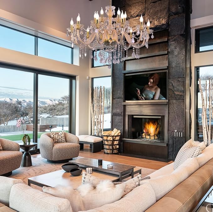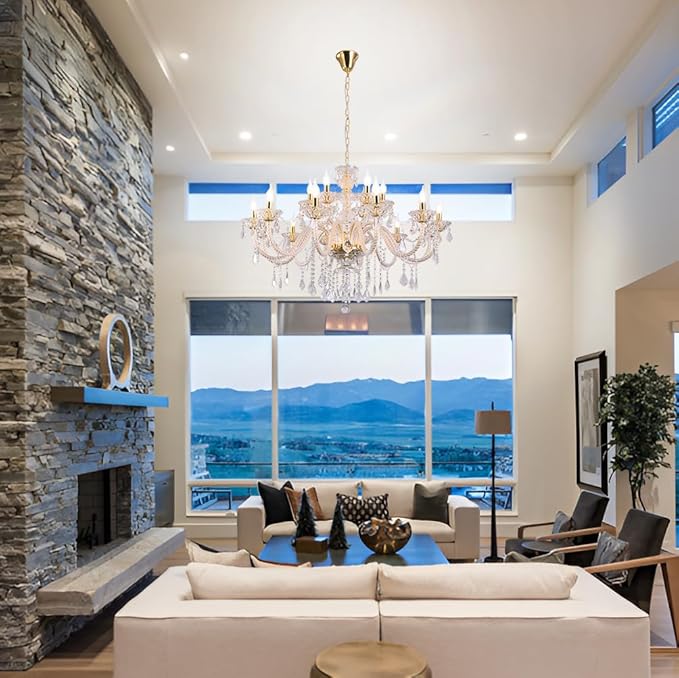 - This is a modern and luxurious Transparent K9 crystal chandelier with a double layered candle style 18 lights, and over 95% of the entire lamp accessories are crystal. When the light is turned on, the entire crystal is brilliant and gorgeous, showcasing modern luxury and bringing a luxurious and warm style to your home.