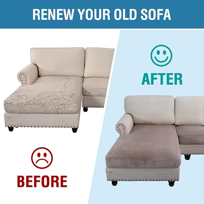 - UPGRADED THICKER: Each individual cushion cover fits up to 19.6-29 inch width, 21.6-30.5 inch depth, 3-8 inch thickness while the chaise cover fits up to 32-38 inch width, 54-62 inch depth, 3-8 inch thickness. Feature one-size-fits-most, kindly measure before ordering.