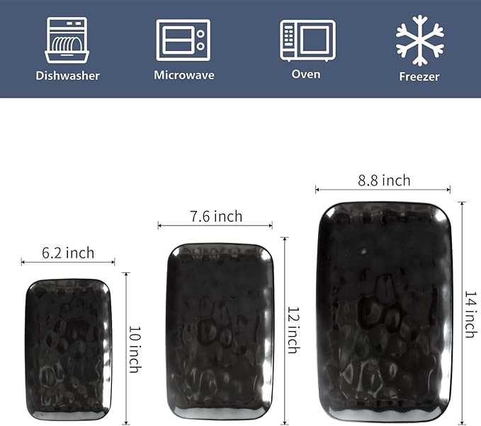 - DURABLE SERVING PLATTER SET: These ceramic rectangle dinner plates using only the highest-quality clay, which enable the porcelains to be much safer and healthier, sturdy and durable, you can safely use them in Microwave, Ovens, Freezer, and Dishwashers.