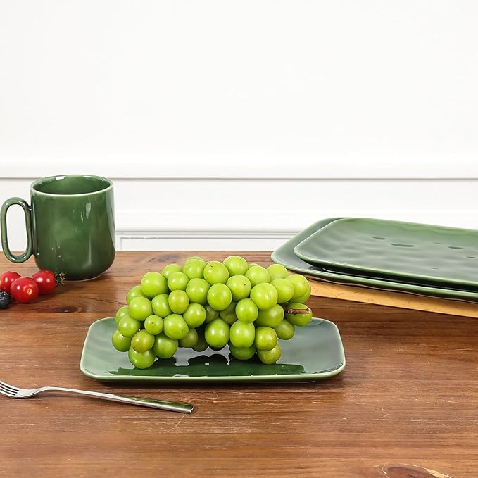 - ELEGANT DESIGN: The rectangle plates set has a unique and stylish fluted design with a reactive glaze finish, and the elegant color easily fits your bowls and other dinnerware set, Make your dining achieved an elegant looking for your friends and guests.