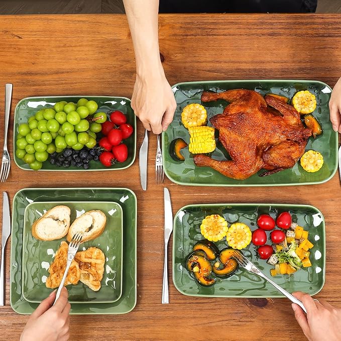 - DURABLE SERVING PLATTER SET: These ceramic rectangle dinner plates using only the highest-quality clay, which enable the porcelains to be much safer and healthier, sturdy and durable, you can safely use them in Microwave, Ovens, Freezer, and Dishwashers.