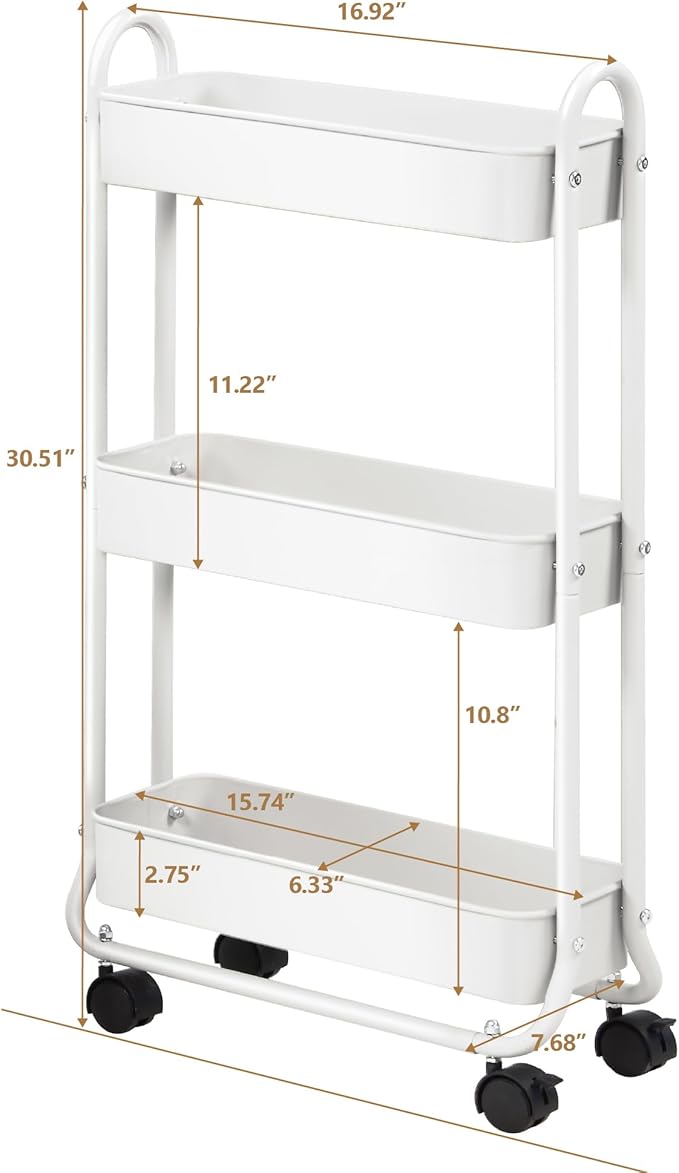 - Make the Most of Your Space: Cleverly use narrow gaps with this slim rolling cart, perfect for spaces between the toilet and sink, washer and dryer, or refrigerator and counter.