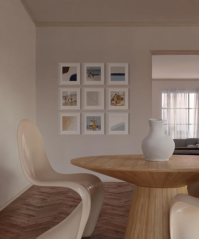 HAUS AND HUES 16x16 White Metal Picture Frames Matted to 12x12 - Features Premium Aluminum & Hanging Hardware, Shatterproof Plexiglass - Ideal for Home, Room, Office (16x16 in, White, Set of 9)
