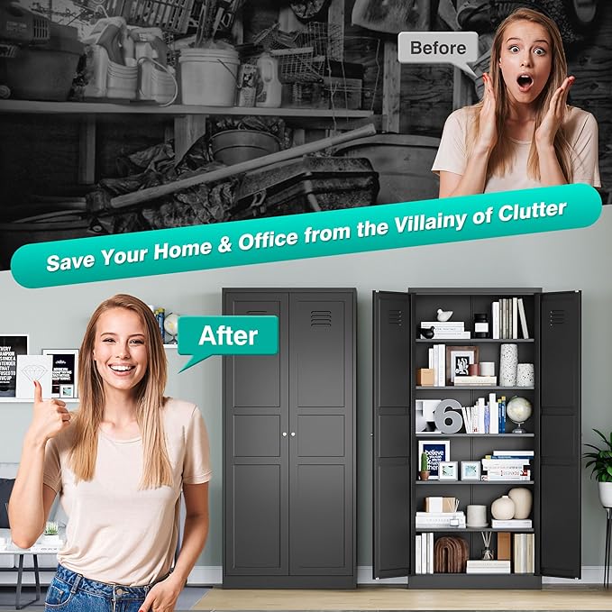 - 6 Tier-Large Capacity : Wide & Deep black storage cabinet have 6 tier for you to store kinds of sundries,toys,tools,food,kitchen appliances and supplies.Let you organize your space like a pro. Save your home from the villainy of clutter.