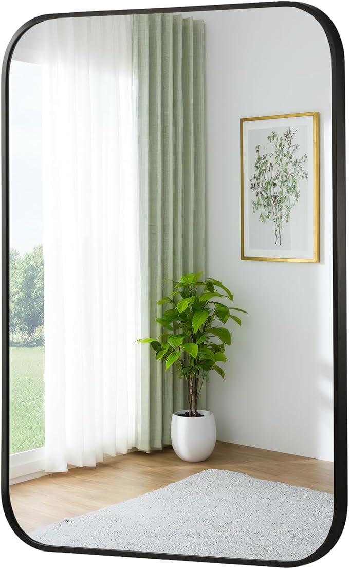 FARMER 24x36 Inch Black Bathroom Mirror, Rectangle Vanity Mirror, Brushed Mirrors for Wall, Metal Frame Hanging Mirror with Round Corner for Bedrooms, Entryways, Living Rooms, Horizontal/Vertical