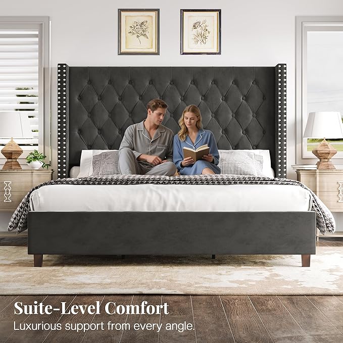 - Grand & Glorious: The 61.4” extra tall headboard with wide wingback offers an extraordinary level of comfort and elegance, turning your king size bed into a luxurious retreat.