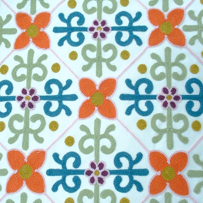 Embroidered Decorative Throw Pillow Cover, 18"x18" Set of 2, Farmhouse Pillowcase Colorful Flower Knit Pattern Cotton Canvas Cushion Case Square Floral Pillow Case for Sofa Couch Bed Living Room