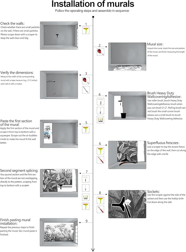 - Warm tip: This mural is not peel and stick, you need to buy your own glue, it is recommended to use Heavy Duty Wallcovering Adhesive.