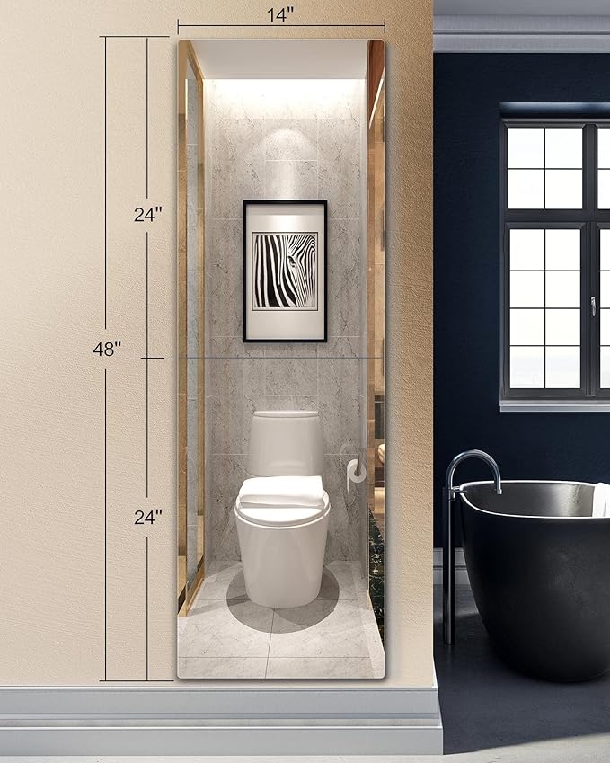 - ( Super Thick ): Full length mirror thickness: 0.12 inch, mirror full length about 47.8 inch L x 14 inch W, espejos para dormitorio ( 14 x 24 inch x 2 Pcs ), because our wall mirror full length thickness is 0.12 inch thick, so the definition is very high, door mirror the image is clear and undistorted