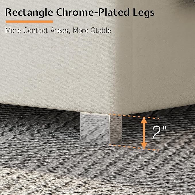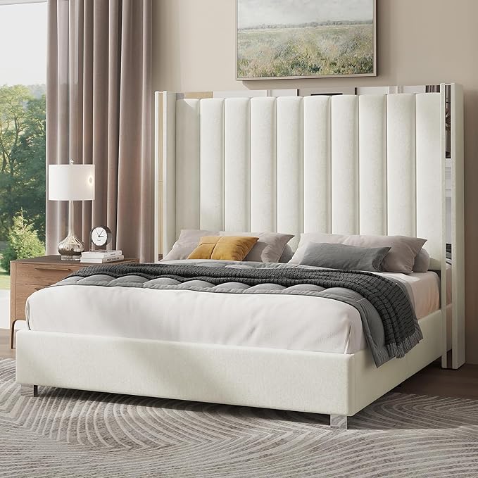 - UNIQUE SILVER METAL PLATING: Top of headboard and wingback are inlaid with shiny mirrored chrome metal strips paired with rectangular plated legs, adding extra beauty and focus to your bedroom.