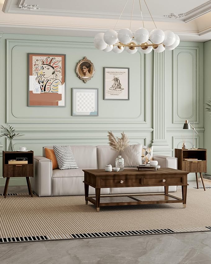 - Small Side Table for Small Spaces:This nightstand is small but has a lot of space,with a storage drawers and open wood shelf that provides a perfect storage space for your remote control, glasses, medicines and other essentials close at hand.The wide top is perfect for displaying a lamp, clock, potted plant or photo frame to offer warmth and personalized decoration.