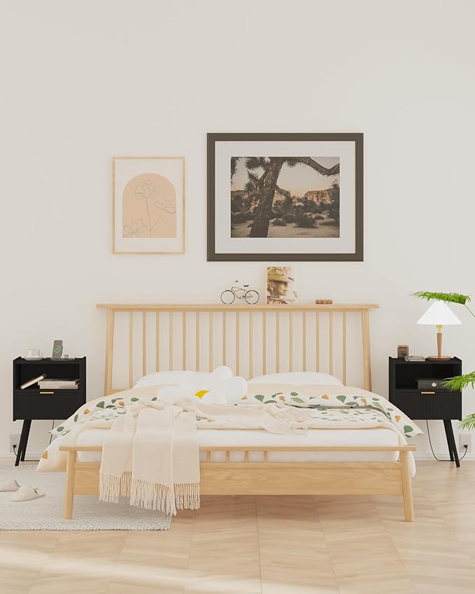 - Small Side Table for Small Spaces:This nightstand is small but has a lot of space,with a storage drawers and open wood shelf that provides a perfect storage space for your remote control, glasses, medicines and other essentials close at hand.The wide top is perfect for displaying a lamp, clock, potted plant or photo frame to offer warmth and personalized decoration.