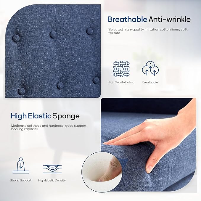 HUIMO Accent Chairs Set of 4, Upholstered Button Tufted Armchair, Linen Fabric Sofa Chairs for Bedroom, Living Room, Mid Century Modern Comfy Reading Chair (4, Dark Blue)