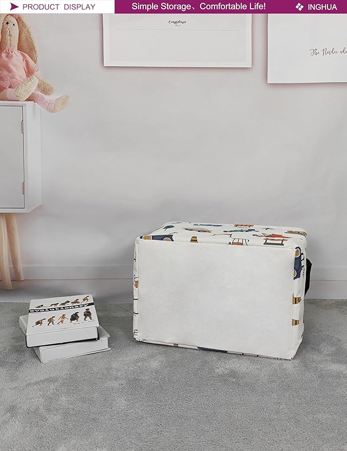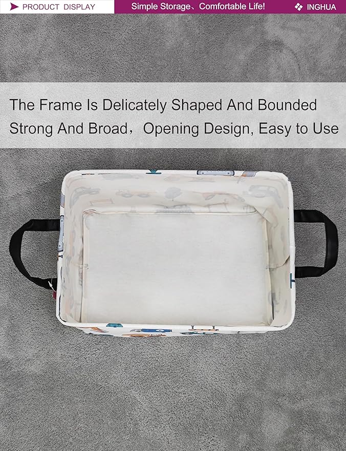 Rectangular Storage Basket Fabric Organizer Bin for Toys,Books,Clothes,Gifts,Pets-Perfect for Home,Office,Nursery,Dorm,Shelf(Rec-Vehicles)