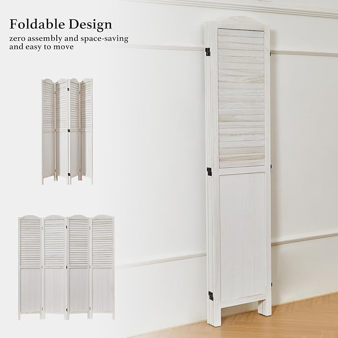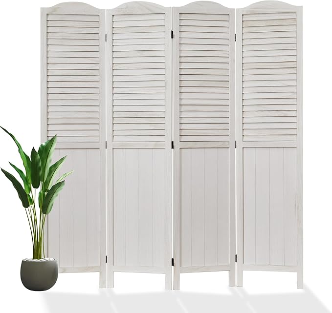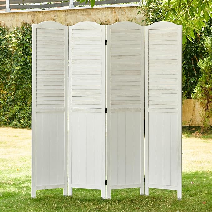 - 【Classic Louver & MDF Design】The upper portion of the screens is ingeniously designed with louver, facilitating the ingress of sunlight and ensuring ventilation. The lower part of the wall divider is crafted from MDF, imparting additional weight and stability to the dividers. It emerges as an ideal option for those seeking a robust and long-lasting product. The top of the screen boasts a French-inspired rounded design, presenting a harmonious blend of practicality and aesthetic appeal.