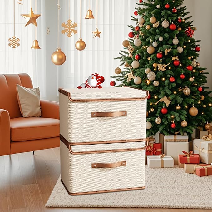 - Large Storage Bins with Lids and Leather Trim: This lid provides added protection for your belongings inside the cube storage organizer, ensuring they stay safe and secure. The leather trim reduces wear, while the convenient handles add to the overall convenience. It's a thoughtful design that extends the usability of the fabric storage boxes with lid
