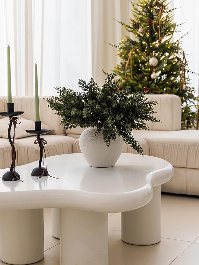 - 【Premium Quality and Natural Appearance】Crafted from high-quality PE, these branches mimic the natural green color of real cedar, offering both aesthetic beauty and durability. After opening the package, simply let the product air out for a few hours to eliminate any initial odor, ensuring a better experience. Note: Vase not included.