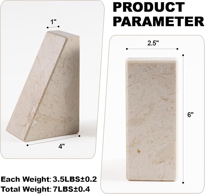 - NATURAL MATERIAL: The heavy duty bookends weight 7LB and are equipped with 4 non-slip pads to effectively minimize scratches on your desktop. Make your reading time more relaxing and ensure the safety of you and your family with this stone book ends for shelves.