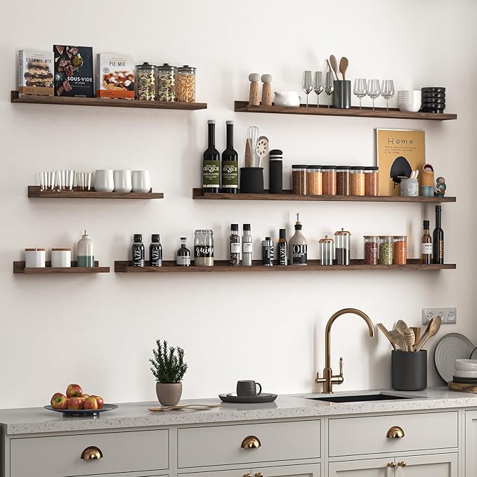 - Picture ledge Shelf for Walls: If you have dozens of pictures but don't know how to display them, Heimlove picture ledge shelves(especially large size) for walls are perfect! With our hanging shelves, store and display different types and sizes of photo frames in one place. The ledge in front of the wall shelves could prevent your precious items from falling off.