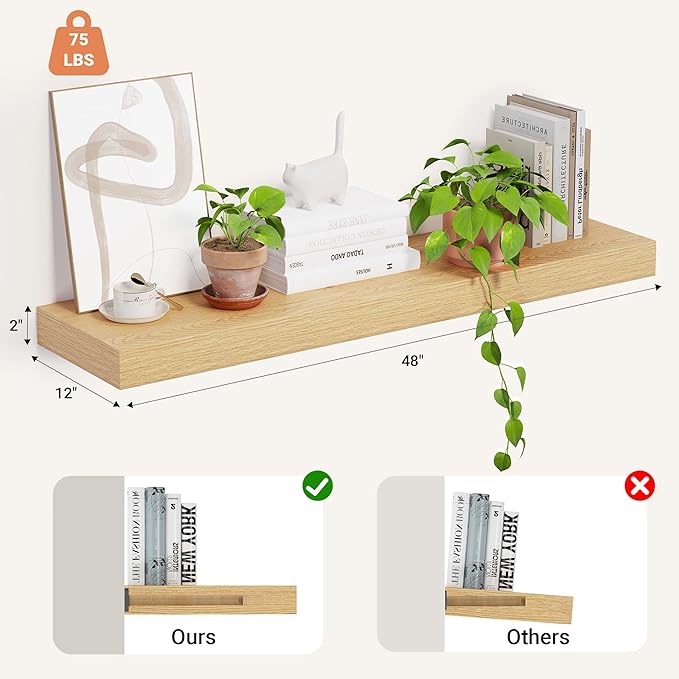 - Sturdy and Effortless Assembly- Includes all necessary hardware to make these floating shelves easy to assemble. We also provide you with detailed install instructions for you to install the shelves in a few minutes.