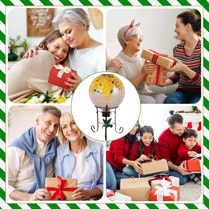 - 【Unique Gift】The gazing ball brings vibrant color and sparkle to any yard or garden. It adds a tasteful splash of color to a garden or flower bed, creating a visually appealing focal point.This gazing ball is an ideal gift for gardening enthusiasts,providing them with a unique decorative element to enhance their outdoor spaces.It also makes a thoughtful housewarming present,offering new homeowners a charming addition to their garden or patio decor