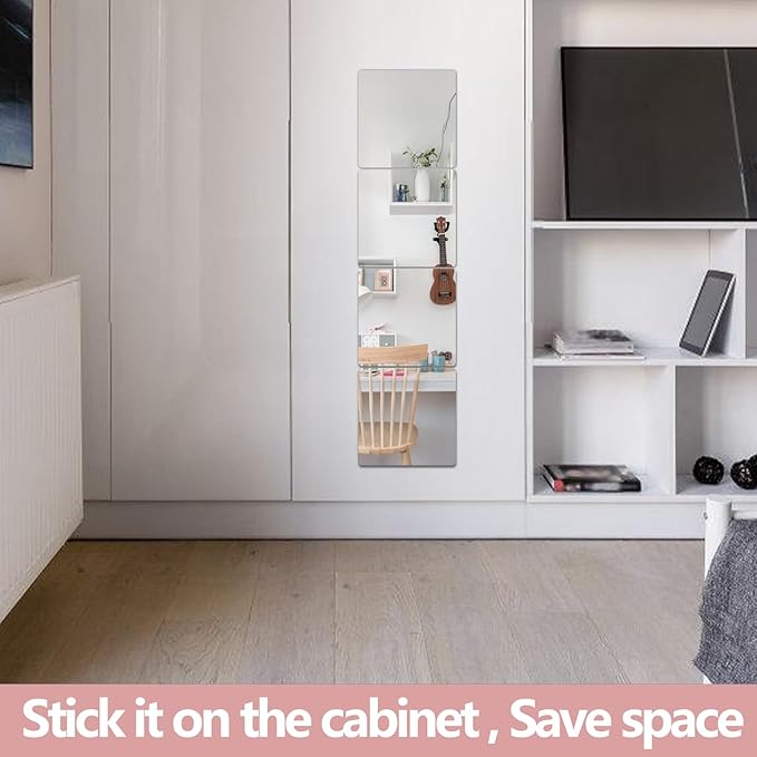 Unbreakable Full Length Wall Mirror,Mirrors for Bedroom,Over The Door Mirror,4 Pcs 12"x12",Shatterproof Plexiglass Acrylic,Long Closet,Workout for Home Gym Body Mirrors for Bedroom