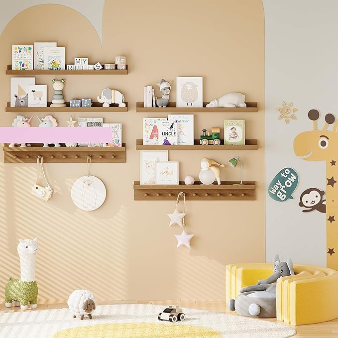 - Effortless Assembly: Wall shelves for bedroom assembly is a breeze, making it an easy DIY task. There's no need to engage a skilled carpenter to affix your shelves; all the necessary hardware for securing the wooden floating nursery shelves is provided. You'll find comprehensive installation instructions included for your convenience.