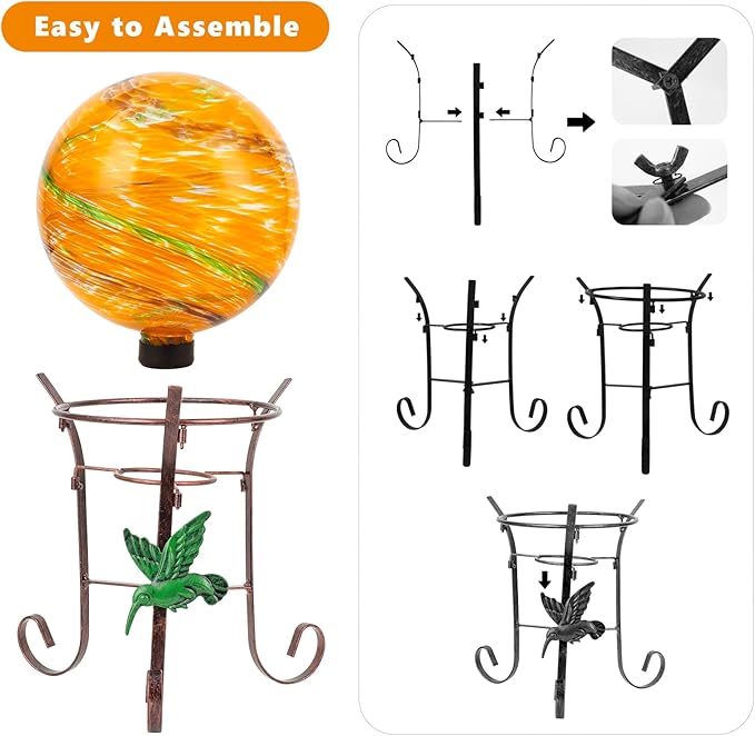 - Exquisite Design: The glass gaze globe designed with swirls of color for an unique artisanal look and copper gazing globe stand with a green hummingbird decor, this exquisite gazing ball with holder set will catch the eyes of garden lovers and interior decorators alike, adding a different kind of surprise while providing your home with a gorgeous decoration