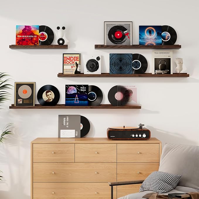 - Picture Ledge Design: Ideal for displaying photos, artwork, small plants, or collectibles, these shelves feature a thoughtful ledge design with a subtle lip and a shallow groove behind it. This design securely holds items in place while maintaining a clean, modern look.
