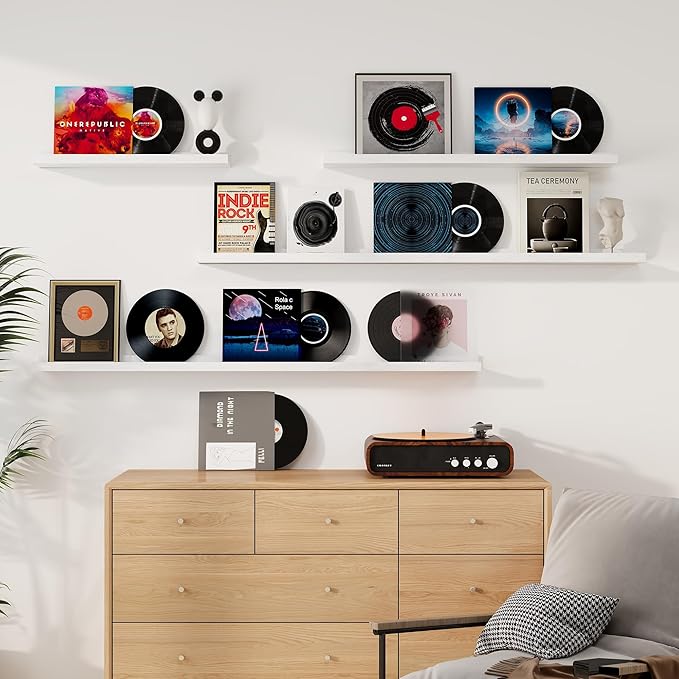 - Picture Ledge Design: Ideal for displaying photos, artwork, small plants, or collectibles, these shelves feature a thoughtful ledge design with a subtle lip and a shallow groove behind it. This design securely holds items in place while maintaining a clean, modern look.