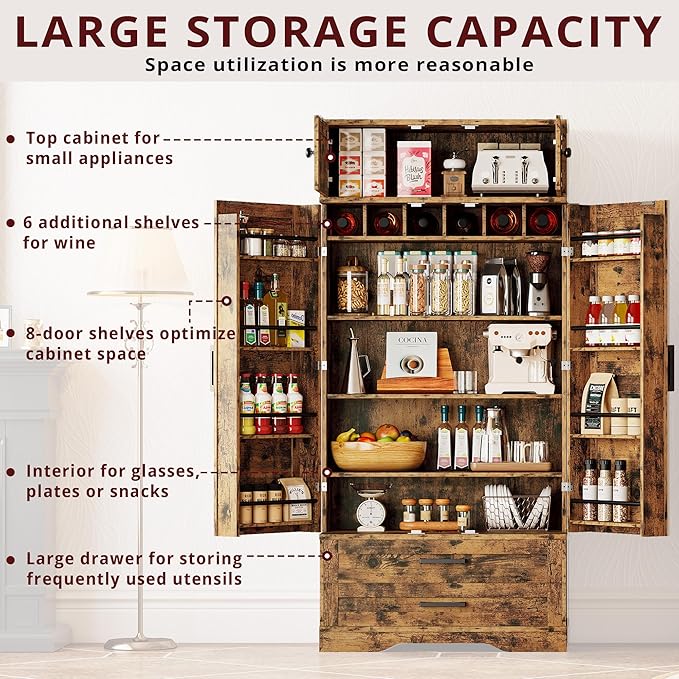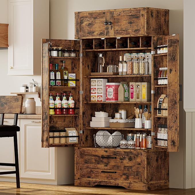 - Multipurpose Design: This pantry cabinet is not just a pantry organizer but a stylish addition to your kitchen decor, serving as a freestanding cupboard for dining room and living room, blending functionality with elegance