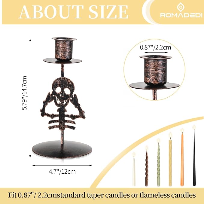 - Measurements: This Halloween Candle Stick Holders height 5.9"/15cm with 3.2"/8cm diameter base, small and Lightweight. Perfect for taper candles diameter less than 0.87''/2.2cm.