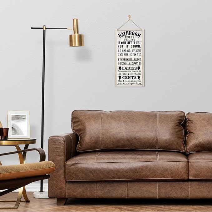 Rustic Western Bathroom Decor - Funny Wall Signs, Farmhouse Country Rules Wall Decor B1