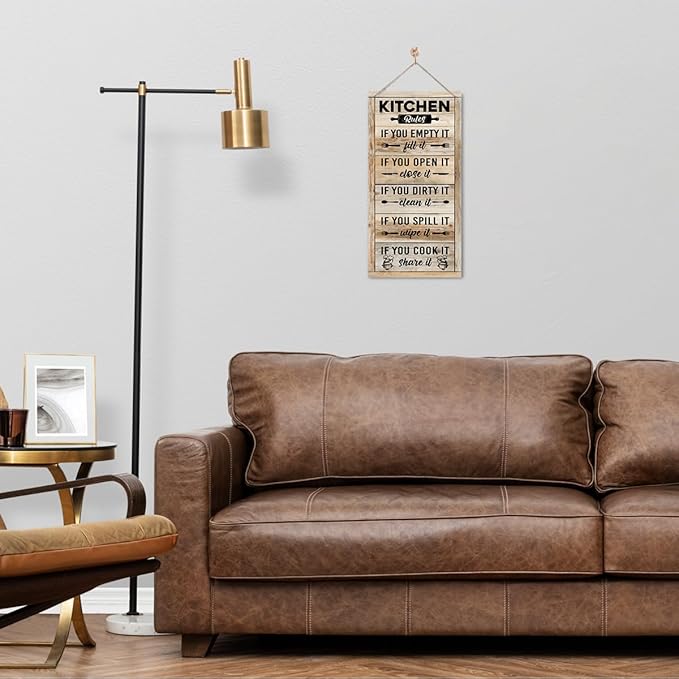Hanging Kitchen Rules Wood Decor Sign, Rustic Kitchen Wooden Signs, Printed Wood Wall Art Sign, Kitchen Door Rules Rustic Sign, Hanging Wood Sign Kitchen Decor, Funny Farmhouse Kitchen Wall Décor E1