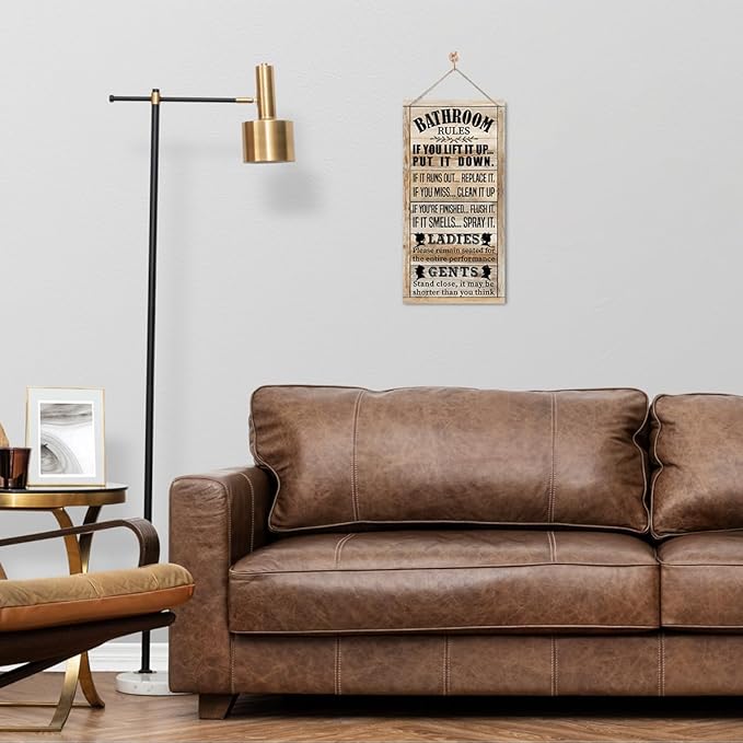 Rustic & Funny Bathroom Signs - Western & Farmhouse Bathroom Rules Wall Decor E1