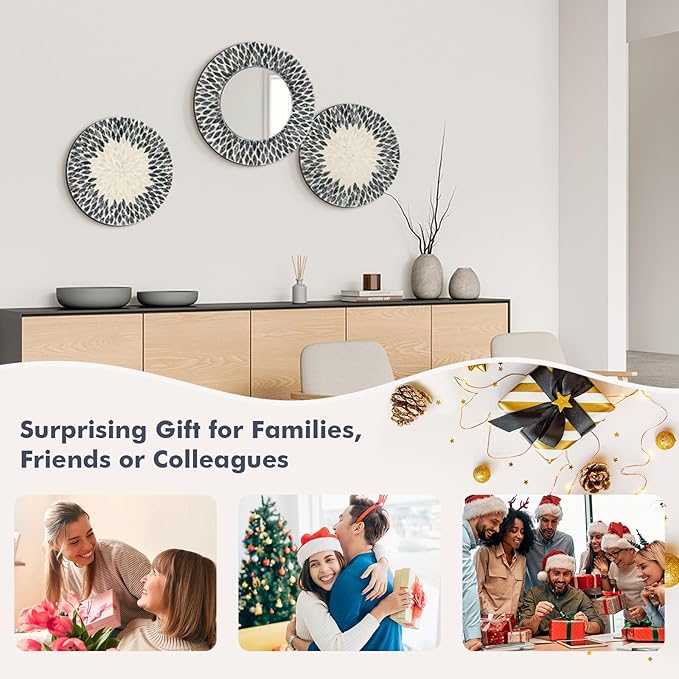 - VERSATILE MIRROR WALL DECOR: Whether moving into a new home or looking for a special gift, this modern decorative wall sculpture set is an unbeatable choice. Perfect for home office, hotel or coffee shop. It makes a lovely addition to living rooms, dining rooms, bedroom, bathroom, nursery, guest room, entrances, porch, fireplace, and by windows. Plus, a warm gift for families, friends or colleagues on holidays, birthdays, anniversaries, housewarming, Christmas or Thanksgiving
