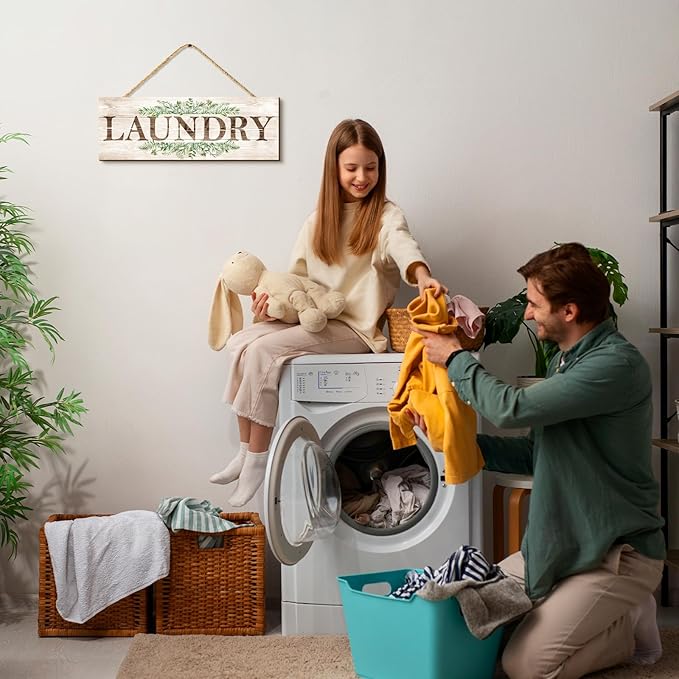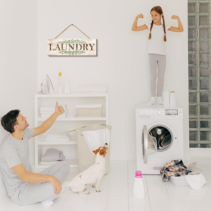 Laundry Sign Wall Decor, Kitchen Wall Art with Plant Print, Rustic Farmhouse Wall Hanging Plaque Home Kitchen Decorative (Laundry), 4.7 x 13.7 inches