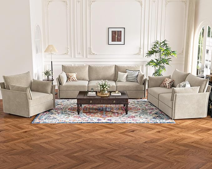 - 💡 Stylish and Spacious Sectional Sofa - A blend of modern elegance and comfort, this beige sofa is ideal for contemporary interiors. Customize seating and shape by adding or removing modules to fit your needs. It's perfect for your living room, family room, bedroom, or office. Overall size: 102.6" W × 68.5" D × 36" H, seat width: 32", seat depth: 24.5".