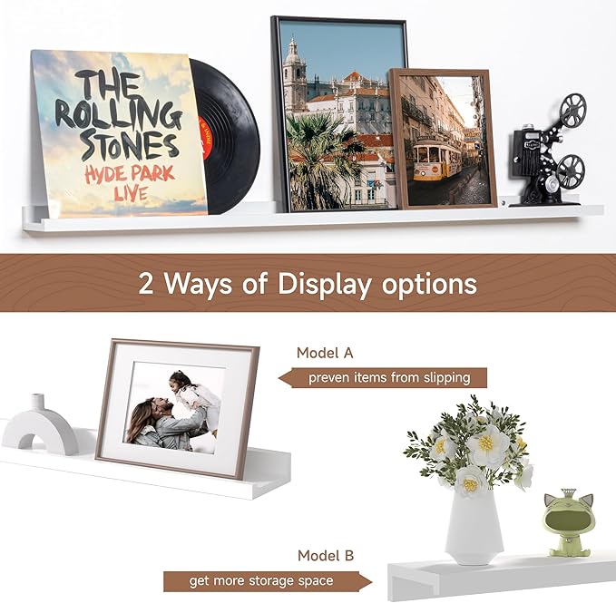- MEMORIES SHOWCASE SHELF: Do you have a lot of memorable photos, but don't know how to display them, Fun Memories picture ledge shelves (especially in large sizes) are perfect for you to display them! With our hanging racks, you can store and display different types and sizes of photo frames in one place without worrying about