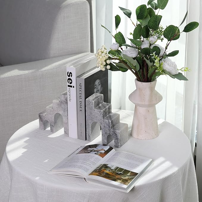 - Durable and Practical ---- The marble bookends are great for organizing your books, CDs, DVDs, and magazines, these book stoppers will make your reading time better and your bookshelf more tidy and organized. The aesthetic book ends also maintain long-term stability and will not be deformed by external factors, ensuring that your books are always securely placed.