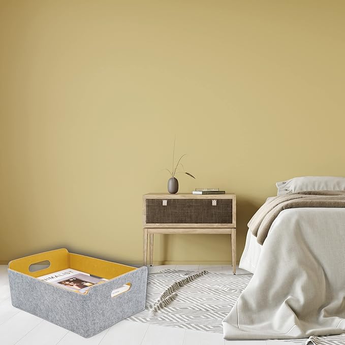 - 【Sustainable material】 Recycled felt with comfortable touch feeling, soft to prevent scratching,flexible for space saved up on desk, office ,bedroom, closet ,kitchen,bathroom or anywhere you desire with these stylish storage and organizer bins.